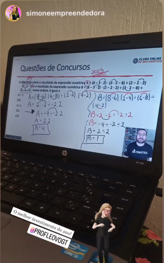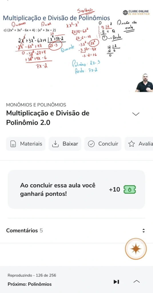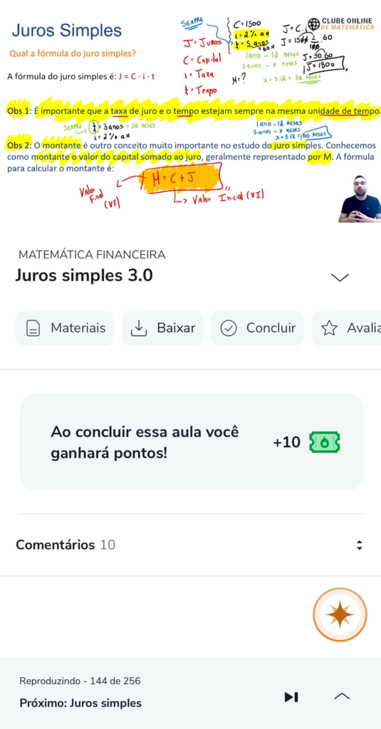 Na Área do Aluno, você conta com suporte direto: sempre que surgir uma dúvida sobre a aula ou a resolução de um exercício, é só escrever abaixo da videoaula que o professor esclarecerá.